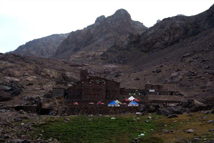 Drive from Marrakech to Imlil (el. 1740m). Here we meet our multeers and pack our supplies (bags, water, and food) for three days. Start trekking, after a 3 hour walk we stop for lunch at Chamharouch. Continue the trek for another 2-3 hours, arrivivg at the refuge (el. 3200m) for dinner and overnight stay.